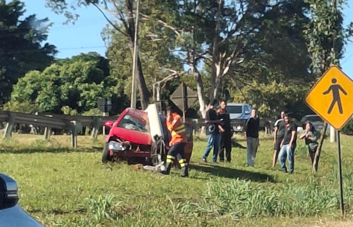 Carro bate contra poste na BR 020 e motorista fica ferida