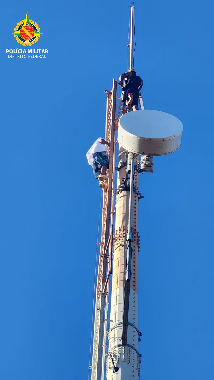A torre pertence a Polícia Militar. De acordo com a corporação, além do risco à integridade física de ambos, há suspeitas de que também pretendiam furtar baterias responsáveis pelo funcionamento dos equipamentos da torre.
