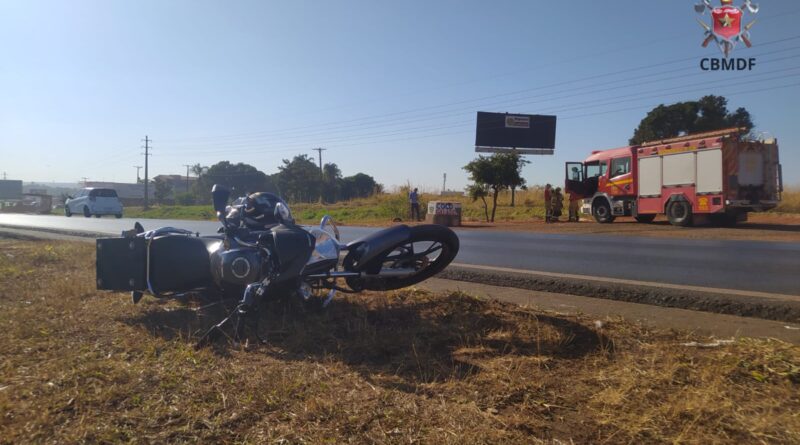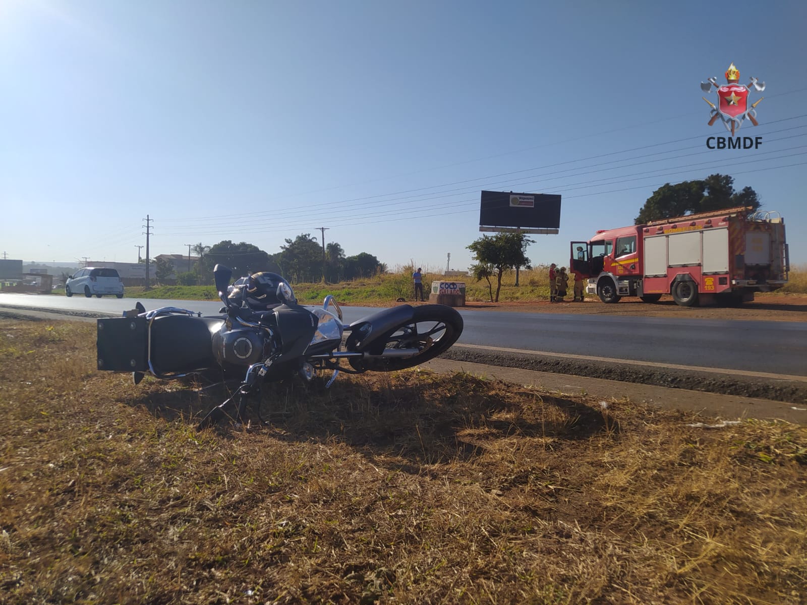 Um motociclista sofreu ferimentos em um acidente que envolveu a moto que ele conduzia, um ônibus e um caminhão na BR 020. O acidente ocorreu na Estância Mestre D´Armas, próximo ao Atacadão Dia a Dia, região de Planaltina.
