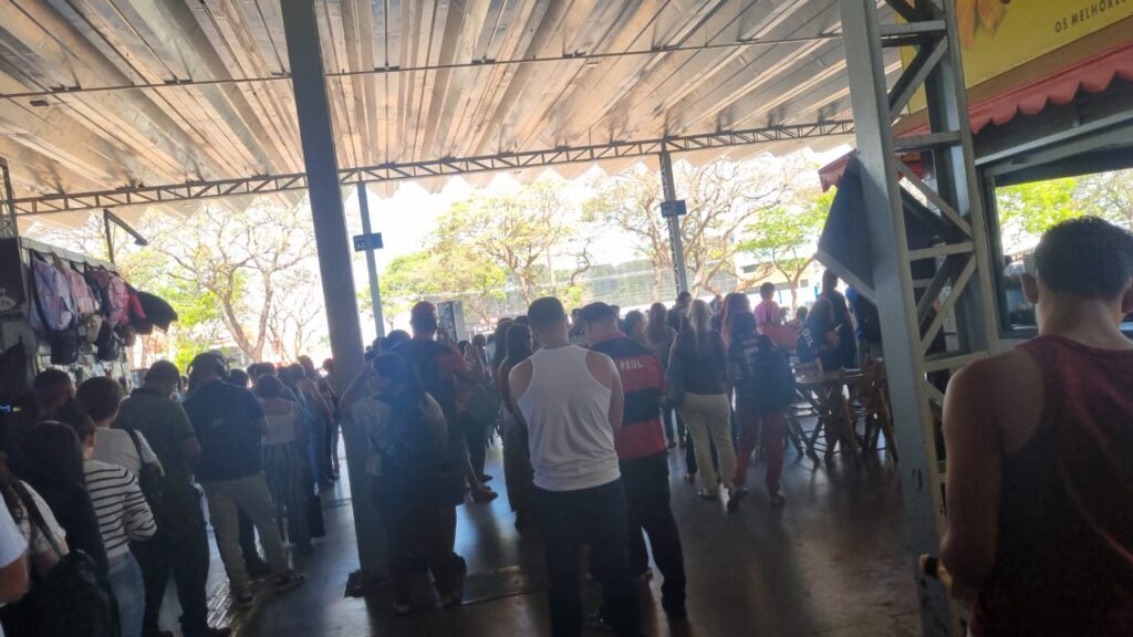 O terminal rodoviário de Planaltina ficou abarrotado de passageiros, pois os ônibus não conseguiram retornar para a cidade em razão da retidão no trânsito na BR 020, que já está afetada pelas obras da terceira faixa.