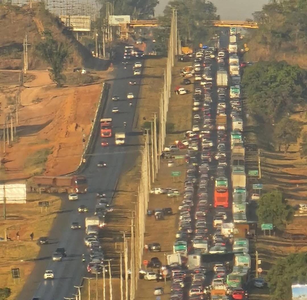 A implantação de uma lombada e uma faixa de pedestres travaram o trânsito na BR 020, na altura do DVO, em Planaltina, na manhã desta quinta-feira (2).