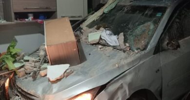 A pista foi parcialmente interditada para retirada do caminhão e o recolhimento do arroz que ficou espalhado no asfalto.