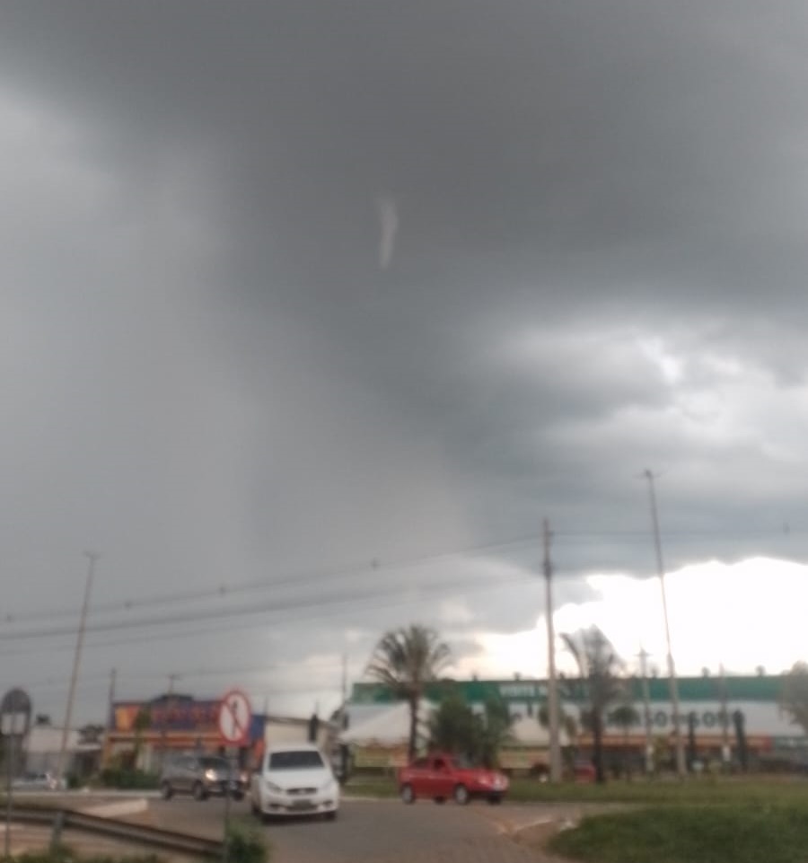 Uma núvem funil, que é a etapa inicial da formação de um tornado, foi registrada nos céus de Planaltina e do Arapoanga na tarde deste domingo (18).