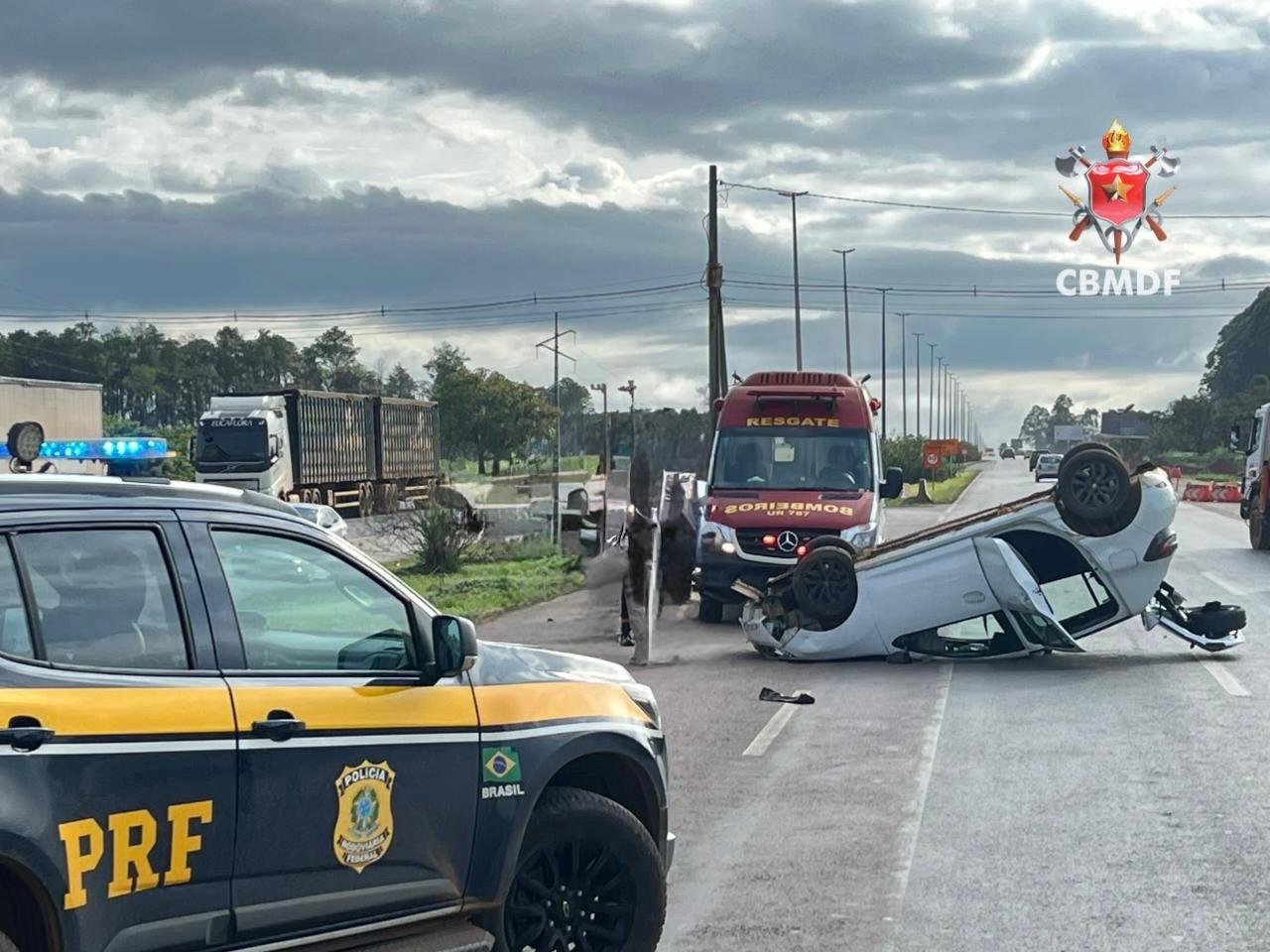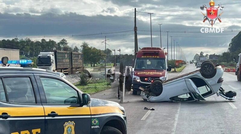 Um carro de passeio capotou na BR 020, em frente ao Condomínio Nova Colina, em Sobradinho, nesta quinta-feira (12) e deixou dois feridos.