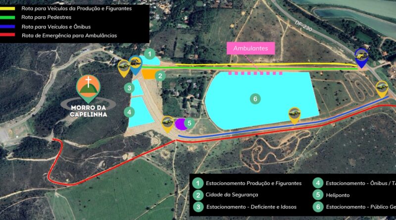 A partir das 5h, os agentes de trânsito estarão nos dois acessos ao Morro da Capelinha, pela DF-230, para controlar o tráfego e orientar o público. O primeiro acesso será exclusivo para veículos da produção do evento e para pedestres, que contarão com rota própria.
